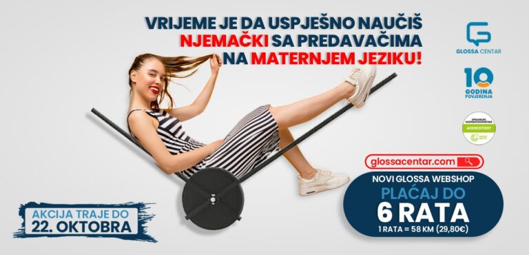 Od sada u web-shopu svaki Glossa kurs njemačkog jezika možeš da plaćaš uz do 6 rata već od 58 KM (29,80€) sa jednom od UniCredit platnih kartica (Visa Classic, MasterCard revolving, Visa revolving, Zlatna Visa revolving). Svoj kurs možeš da platiš i u cjelosti putem web-shopa, a ako ne želiš da plaćaš karticom ostaje ti i dalje mogućnost plaćanja do 3 rate!